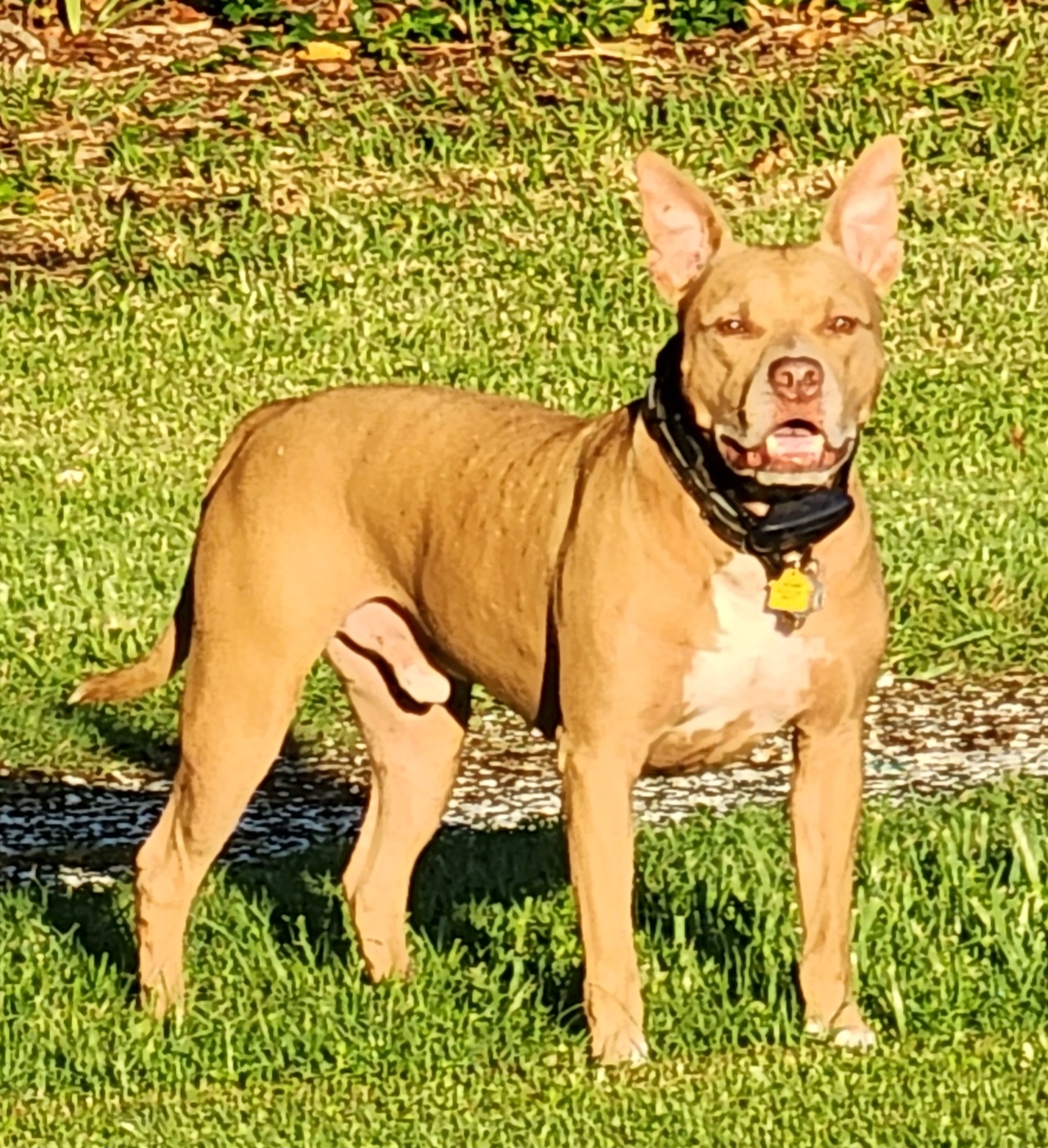"Magnum was walking stray on a 49th St sidewalk in the fall of 2019 when I saw him dangerously near traffic. Took about 30 mins, but when I laid down in a parking lot and stared at the sky so i wouldn't make eye contact, he abanded his keep-a-distance behavior, hesitantly came over to me, put his nose on my leg, and that's how I finally grabbed/got Magnum. Discovered there was nothing on the collar, and the Pet Pal clinic could find no chip, Brought him home, condo, 25 lb limit, so shortly we got the letter from the HOA, "Get him out!" My wife found a Ft. Lauderdale attorney who made 1 fierce call to the HOA attorney and then a 2nd 'Soprano" type threatening call (all legal of course) afterwhich, the HOA attorney wrote a letter to the HOA....recommending Magnum for residency! We tried for weeks to find his owner...no luck so Magnum became part of our family and is now loved by everyone in our condo complex. Magnum is a quasi celebrity dog because his human mom who he snuggles up to at nght is Dr. Twila Liggett, sole creator, founder, and hands on-daily Executive Producer of PBS"s 26 Emmy winning, 26 year long...Reading Rainbow children's program series. Magnum's big ears are called, by some people, "Bat ears!" Magnum had a mysterious start, but now is with us 6 years, gets a 90 getsmin dog park visit every day, and has lots of off-leash walks.......he was truly "Born To Be Alive!"
