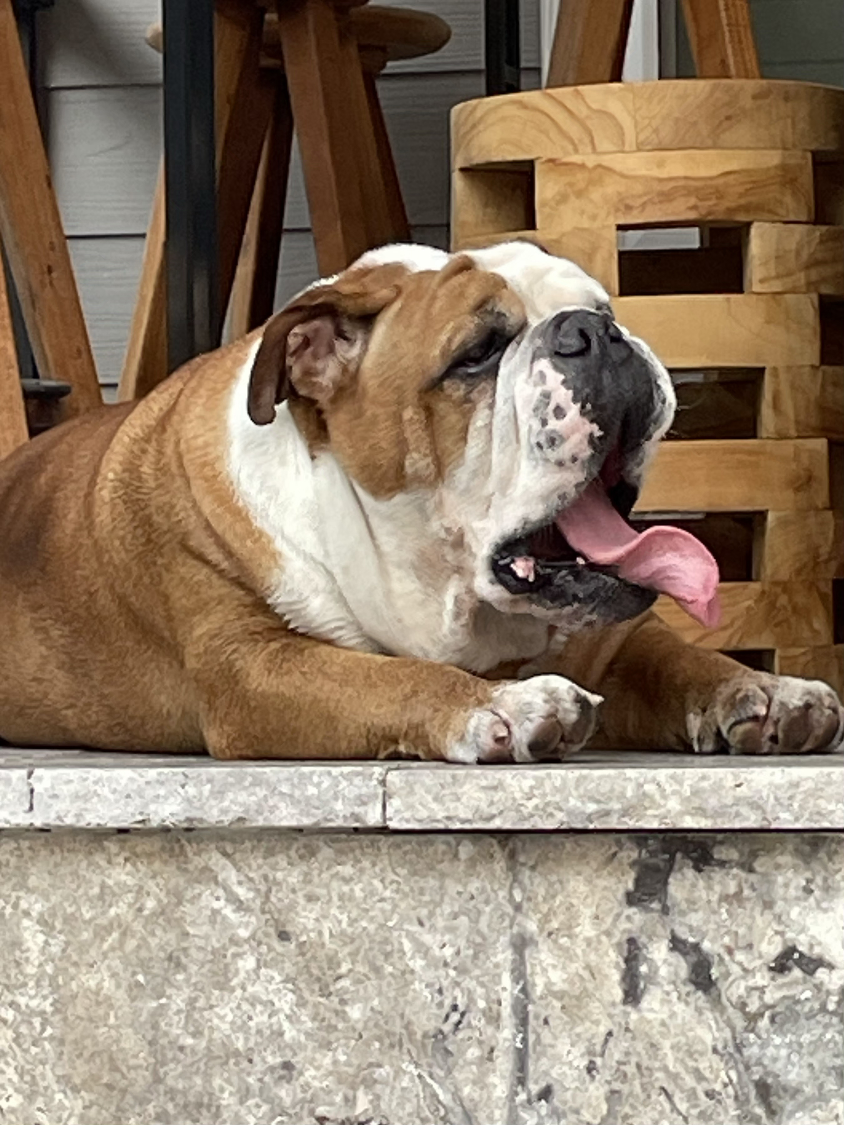 Bull Dozer is a 12 year old English Bulldog adopted from Pet Pal.